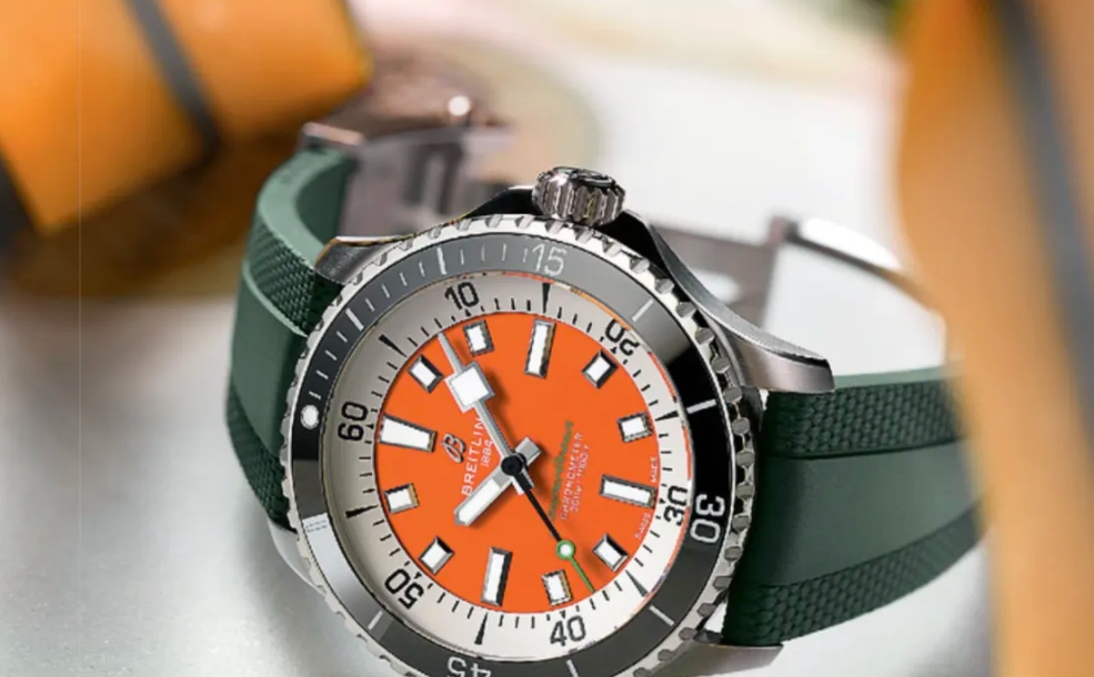 The buy fake Breitling Superocean watches comes in the four sizes previously mentioned and is also available in many colors, which makes more sense for a dive watch than for a pilots’ watch. For our test we chose a 42-mm model — the Superocean Automatic 42 Kelly Slater Limited Edition, limited to 1,000 pieces. Kelly Slater is a well-known professional American surfer who has been linked with such stars as Pamela Anderson, Gisele Bündchen and Cameron Diaz, and is now a brand ambassador and part of the Breitling Surfer Squad. Slater chose the color combination of an orange dial and a green rubber strap, and wearing the watch showed that this combination has a similar polarizing effect as the minute hand. Reactions ranged from open disdain to wholehearted enthusiasm.