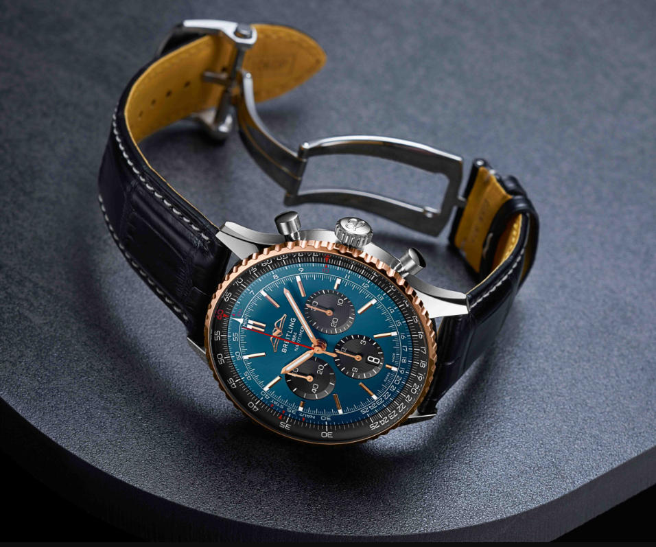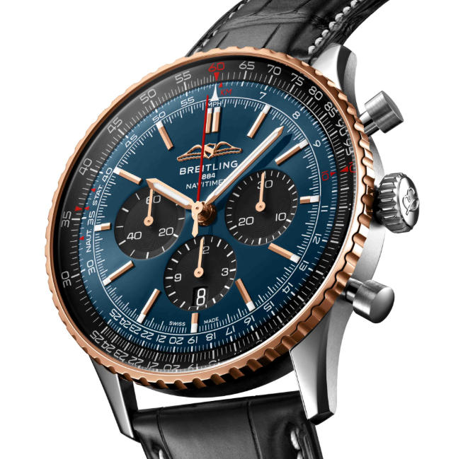 Despite being a thoroughly Swiss brand, Breitling caters to the American market arguably more than any of the other big-name luxury manufacturers. The company produces multiple watches each year that are inspired by everything from NFL teams to classic Detroit-built muscle cars. AAA replica Breitling watches is continuing its tradition of celebrating Americana by creating a new two-tone version of the Navitimer that will be produced as a market-exclusive limited edition of 300 examples. In addition to having a properly American-sized 46mm case, the new Breitling Navitimer B01 Chronograph 46 North American Limited Edition features a blue dial with red accents, and it will be exclusively sold within the United States and Canada.