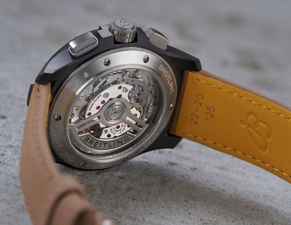 The larger of the Night Mission Chronograph models is the Breitling Avenger B01 Chronograph 46 Night Mission (ref. SB0148101B1X1) and it features a black ceramic case that measures 46mm in diameter by 15.32mm thick, with 24mm lugs and an overall lug-to-lug profile of 54.75mm. The overall colorway of the Avenger B01 Chronograph 46 Night Mission is very similar to the GMT-equipped model from the series, and it features a forged carbon dial with green Arabic numeral indexes and a dark green leather and fabric strap that is completed by a titanium deployant clasp. Additionally, regardless of their case size or colorway, all of the Breitling Avenger Chronograph Night Mission best-selling replica watches UK are powered by the brand’s manufacturer Caliber B01 automatic chronograph movement, which runs at a frequency of 28,800vph (4 Hz) with a power reserve of 70 hours. In addition to being a COSC-certified chronometer, the Cal. B01 operates with a column wheel and a vertical clutch, and Breitling showcases its in-house design through the sapphire display window in the Avenger Chronograph’s caseback.